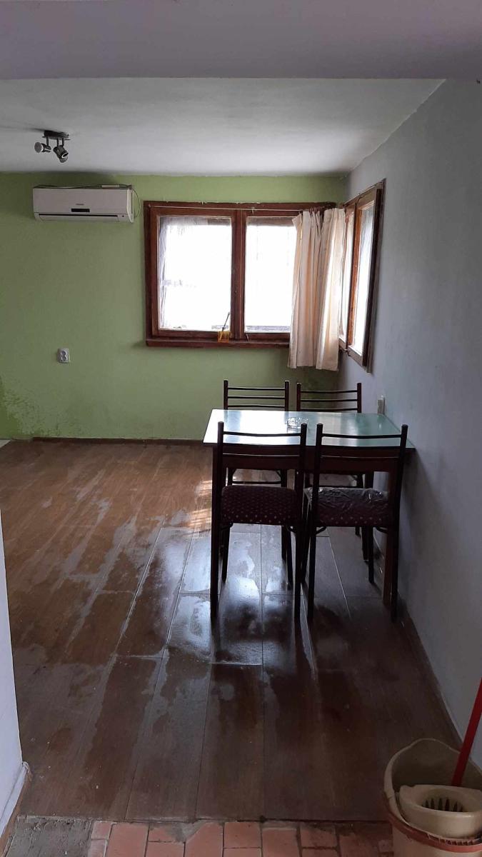 The floor is tiled on the first floor, laminate is laid on the second floor. Lighting fixtures have been installed and two air conditioners. The heating is on electricity and wood.