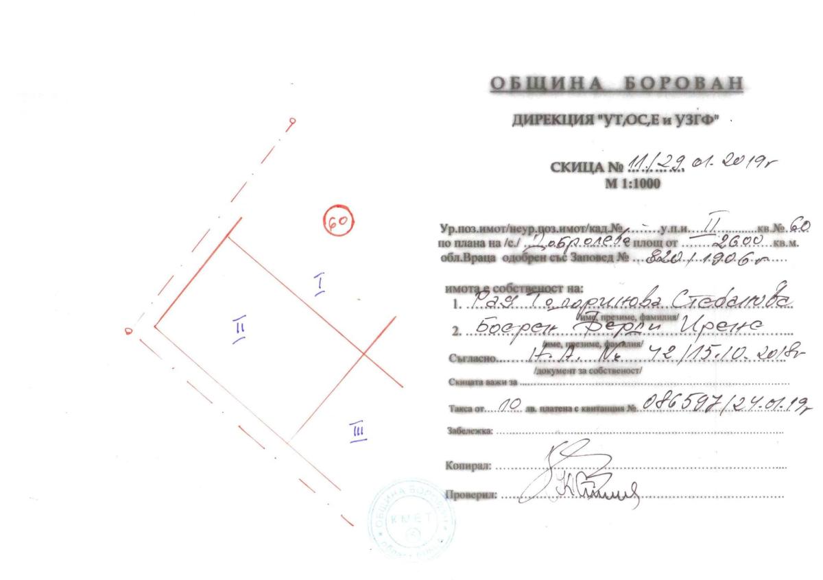 A plot of land in the village of Dobrolevo, Borovan municipalty, Vratsa district. of 2600 sq.m. It is urbanized land within the cadastre boundaries of the village, so it is allowed to build on it.